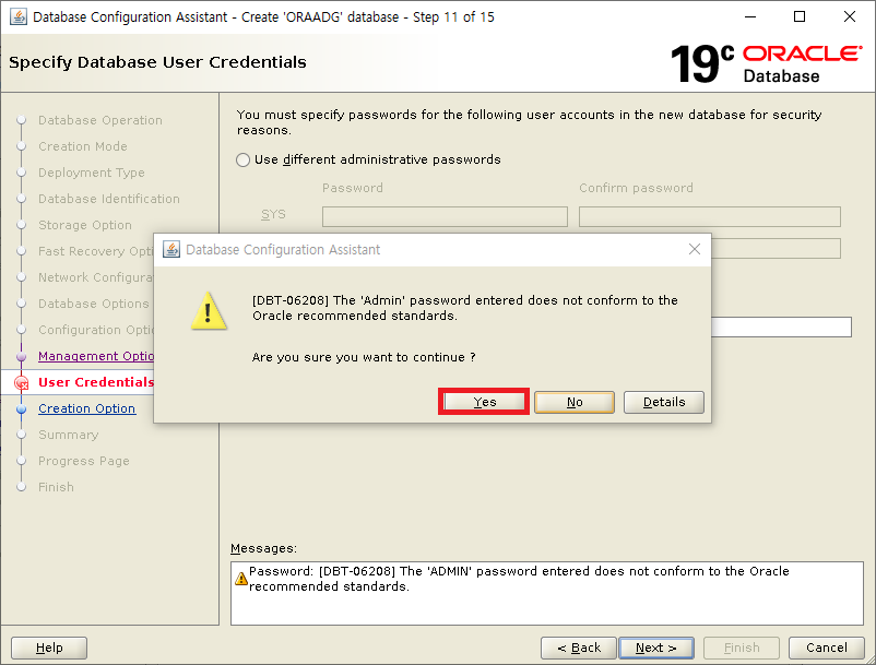 ORAADG, ORAADGDR 모두 사용 불가함(Failed.)