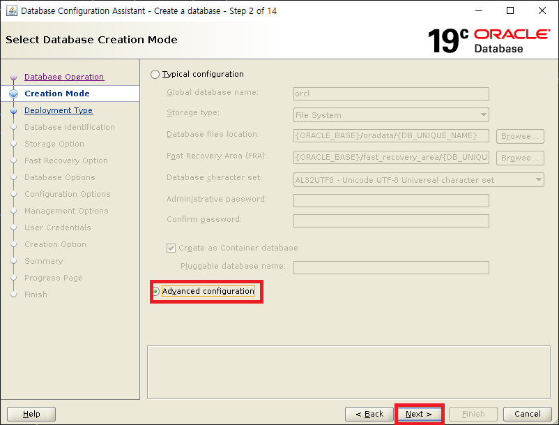 Single instance database installation 선택