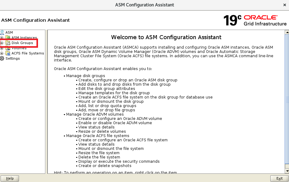 OCR_VOTE와 DATA 디스크 그룹이 존재하는것을 확인 후 Exit