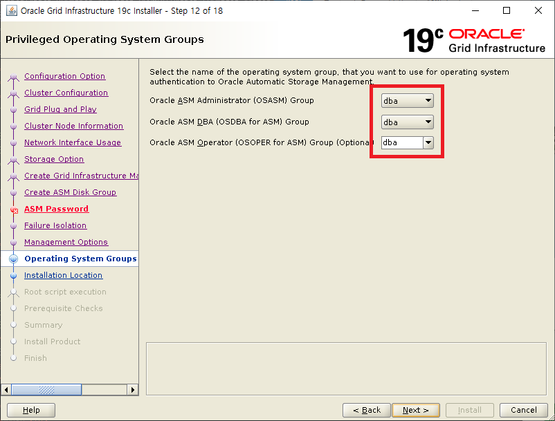 Disk Groups 선택