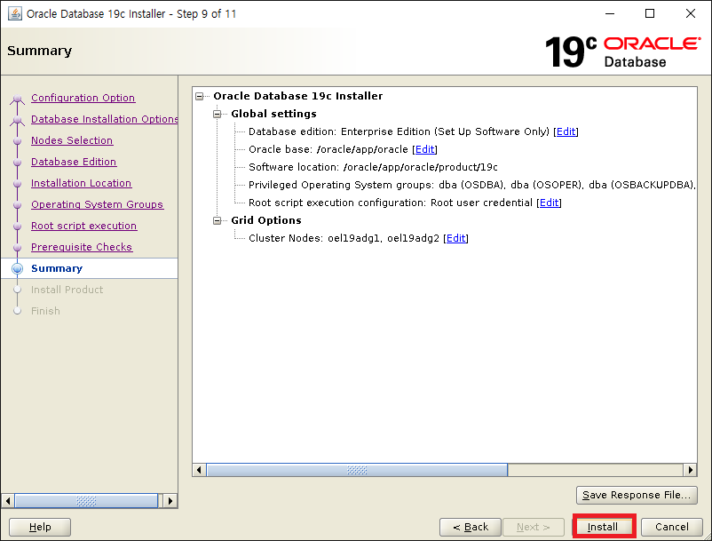 response 파일이 필요하다면 따로 저장 후 Install