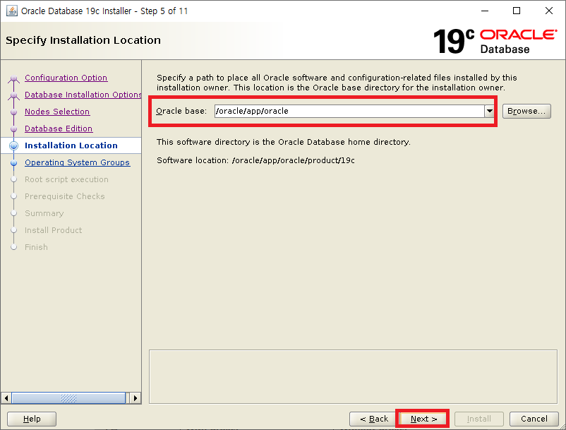 Oracle Home : /oracle/app/oracle/product/19c