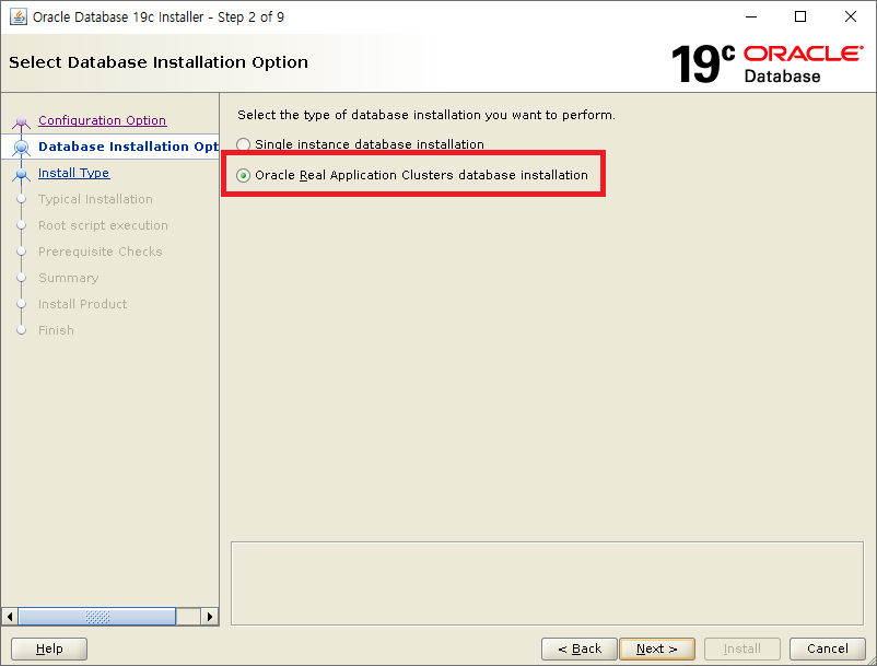 Oracle Real Application Cluster database installation 선택