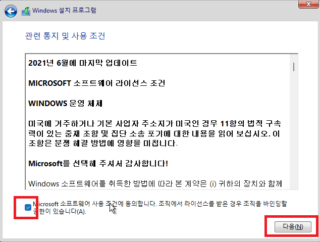 윈도우 11 설치중