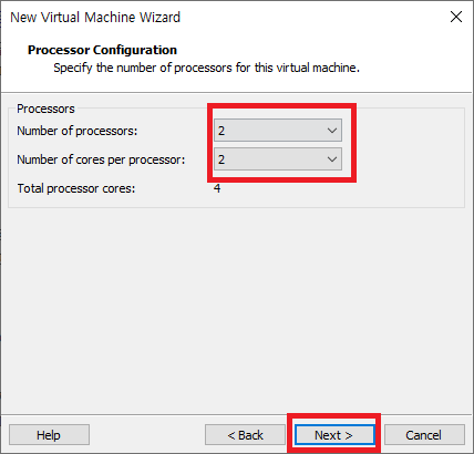 core는 2, 2로 선택