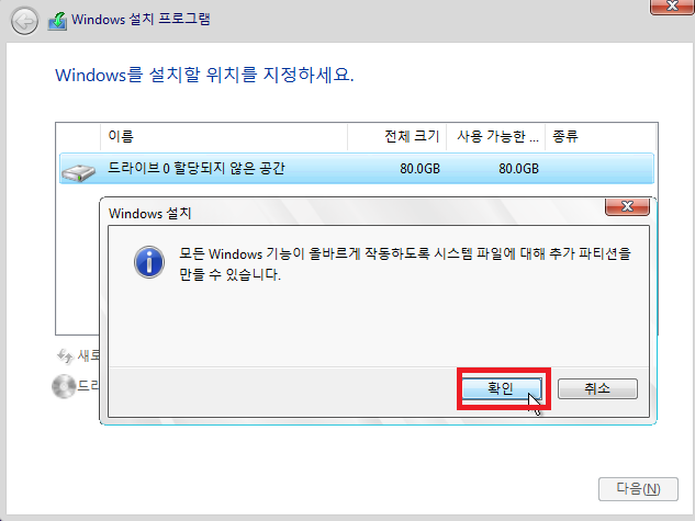 디스크 확인 후 다음