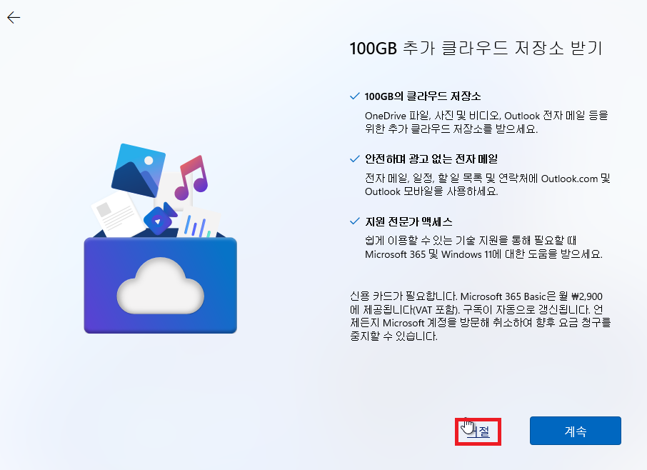 선택 사항 선택 후 다음
