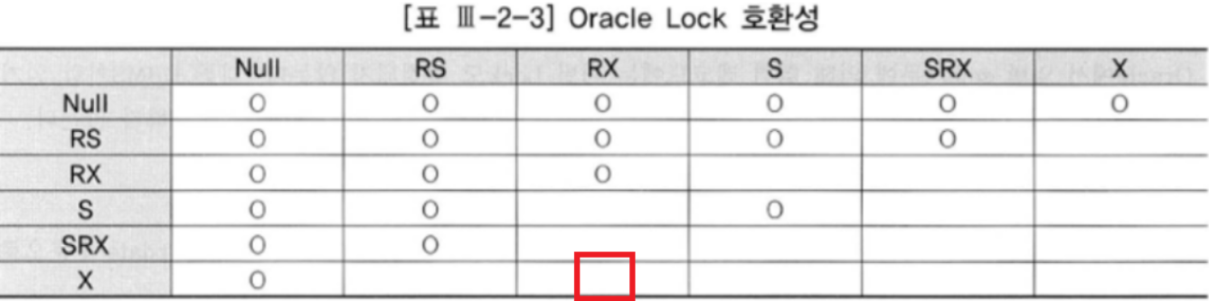 그림에 의하면 LMODE 6 (exclusive (X)) 와 LMODE 3 (row-X (SX)) 가 호환이 안된다고 나와있음