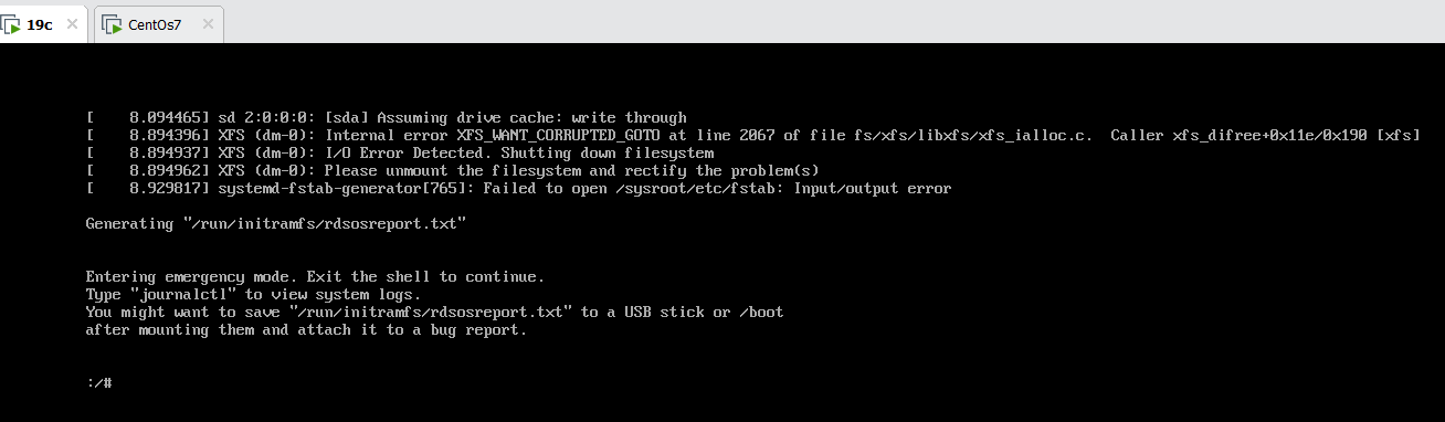 Entering emergency mode Exit the shell to continue